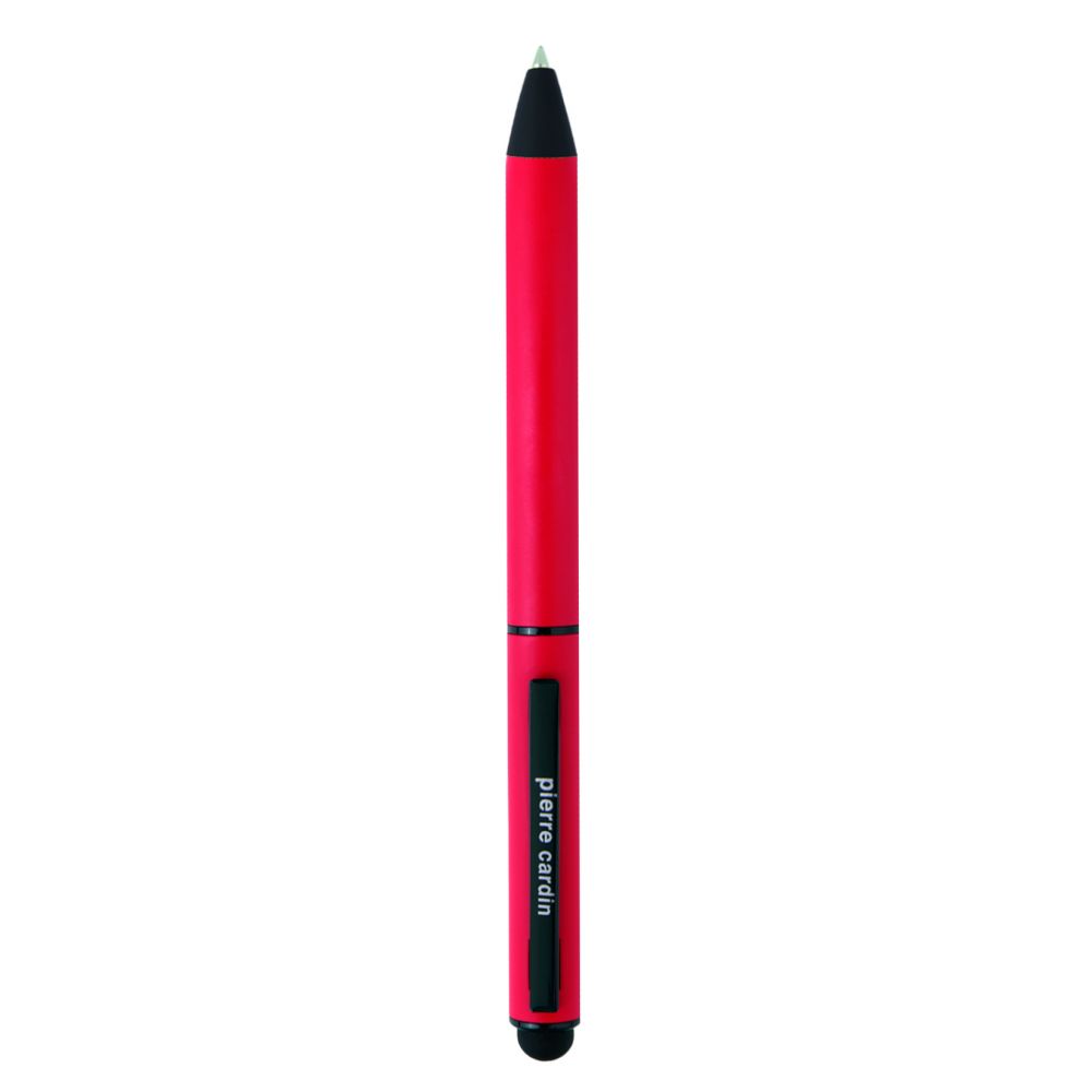 Luxusné guľôčkové pero Pierre Cardin v módnej farbe s hliníkovým telom a gumovou povrchovou úpravou, ktorá je veľmi príjemná na dotyk. Pero má čierne detaily a stylus. Obsahuje kvalitnú modrú náplň s hrotom 0,7 mm. Balené v luxusnom puzdre Pierre Cardin, dodávané s certifkátom pravosti. Rozmery: guľôčkové pero 1 × 14 cm; balenie 5,5 × 15,5 cm.