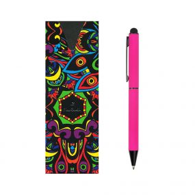 Luxusné guľôčkové pero Pierre Cardin v módnej farbe s hliníkovým telom a gumovou povrchovou úpravou, ktorá je veľmi príjemná na dotyk. Pero má čierne detaily a stylus. Obsahuje kvalitnú modrú náplň s hrotom 0,7 mm. Balené v luxusnom puzdre Pierre Cardin, dodávané s certifkátom pravosti. Rozmery: guľôčkové pero 1 × 14 cm; balenie 5,5 × 15,5 cm.