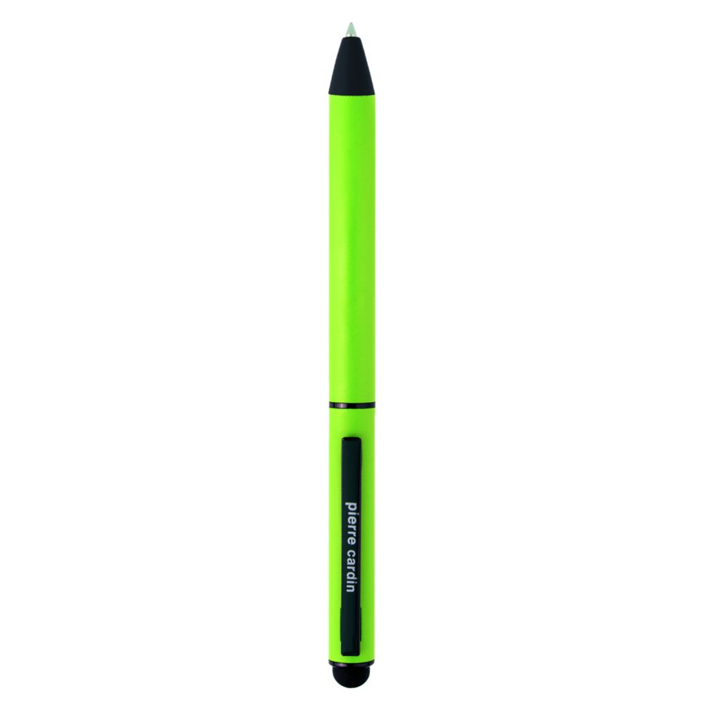 Luxusné guľôčkové pero Pierre Cardin v módnej farbe s hliníkovým telom a gumovou povrchovou úpravou, ktorá je veľmi príjemná na dotyk. Pero má čierne detaily a stylus. Obsahuje kvalitnú modrú náplň s hrotom 0,7 mm. Balené v luxusnom puzdre Pierre Cardin, dodávané s certifkátom pravosti. Rozmery: guľôčkové pero 1 × 14 cm; balenie 5,5 × 15,5 cm.