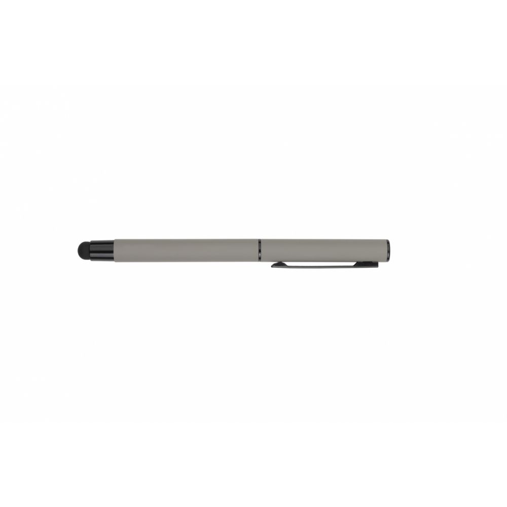 Luxusný roller Pierre Cardin v módnej farbe s hliníkovým telom a gumovou povrchovou úpravou, ktorá je veľmi príjemná na dotyk. Roller má čierne detaily, vrchnák chrániaci hrot pera a stylus. Obsahuje kvalitnú modrú náplň značky Schneider s hrotom 0,5 mm. Balené v luxusnom puzdre Pierre Cardin, dodávané s certifkátom pravosti. Rozmery: roller 1 × 13,5 cm; balenie 5,5 × 15,5 cm.