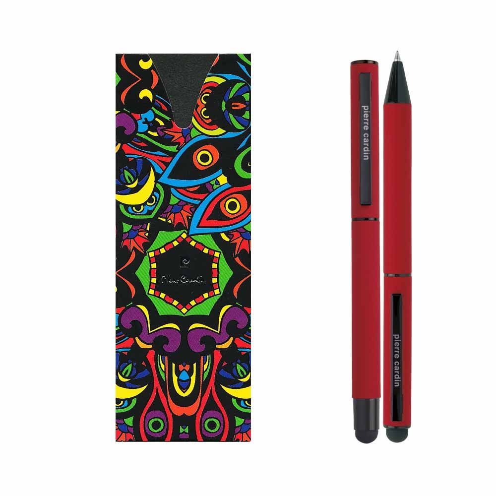 Luxusná súprava rollera a guľôčkového pera Pierre Cardin v módnej farbe s hliníkovým telom a gumovou povrchovou úpravou, ktorá je veľmi príjemná na dotyk. Perá majú čierne detaily a stylus. Roller obsahuje modrú náplň značky Schneider s hrotom 0,5 mm a guľôčkové pero kvalitnú modrú náplň s hrotom 0,7 mm. Balené v luxusnom puzdre Pierre Cardin, dodávané s certifkátom pravosti. Rozmery: roller 1 × 13,5 cm; guľôčkové pero 1 × 14 cm; balenie 7 × 15,5 cm.