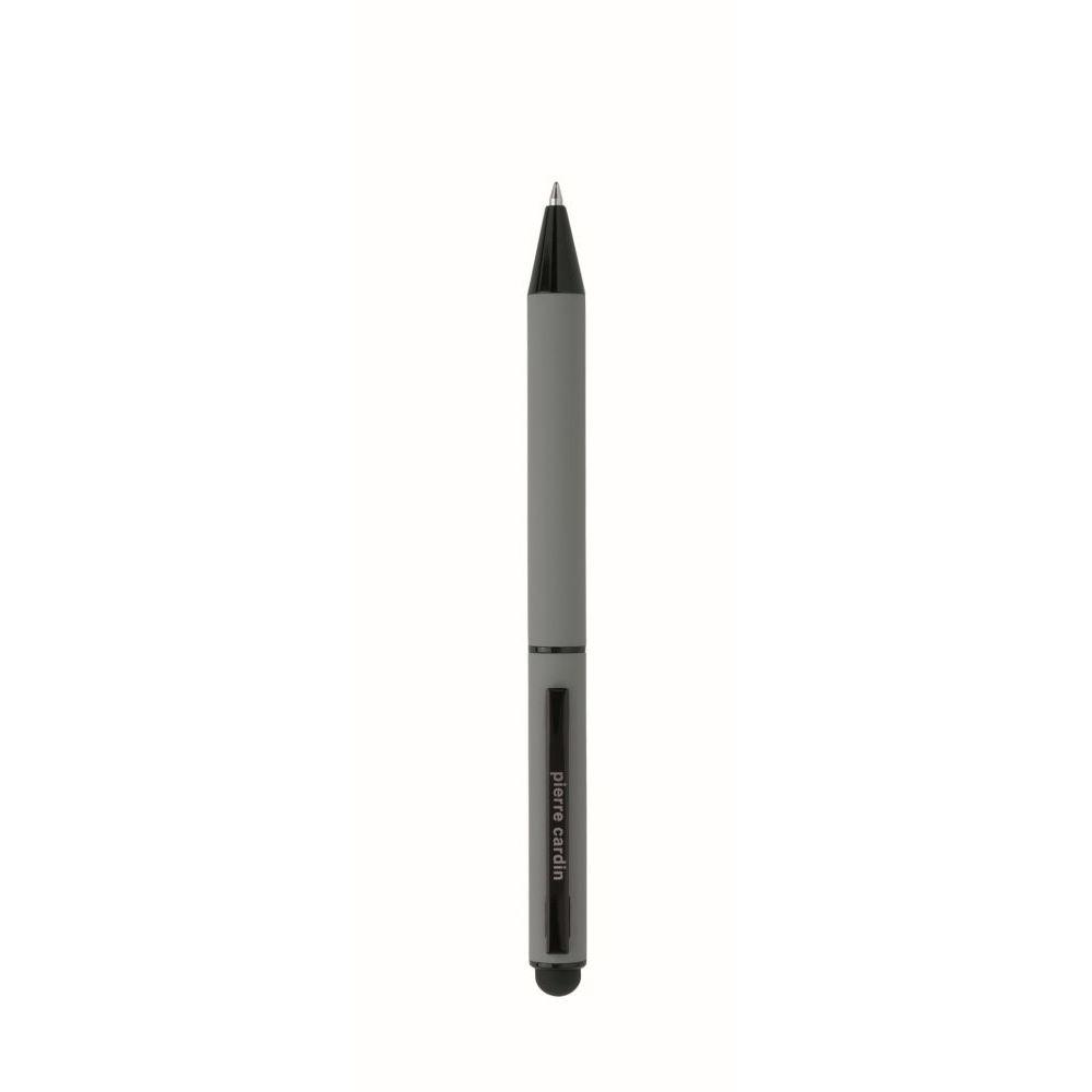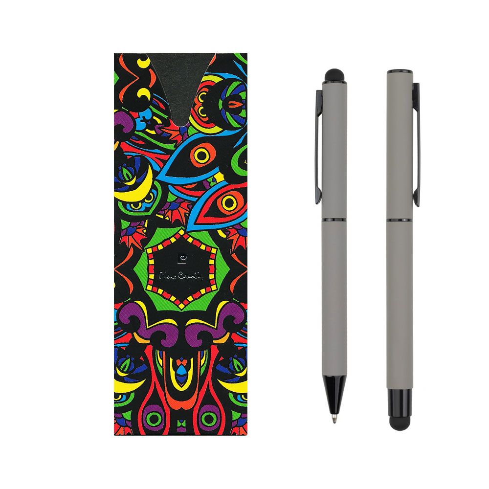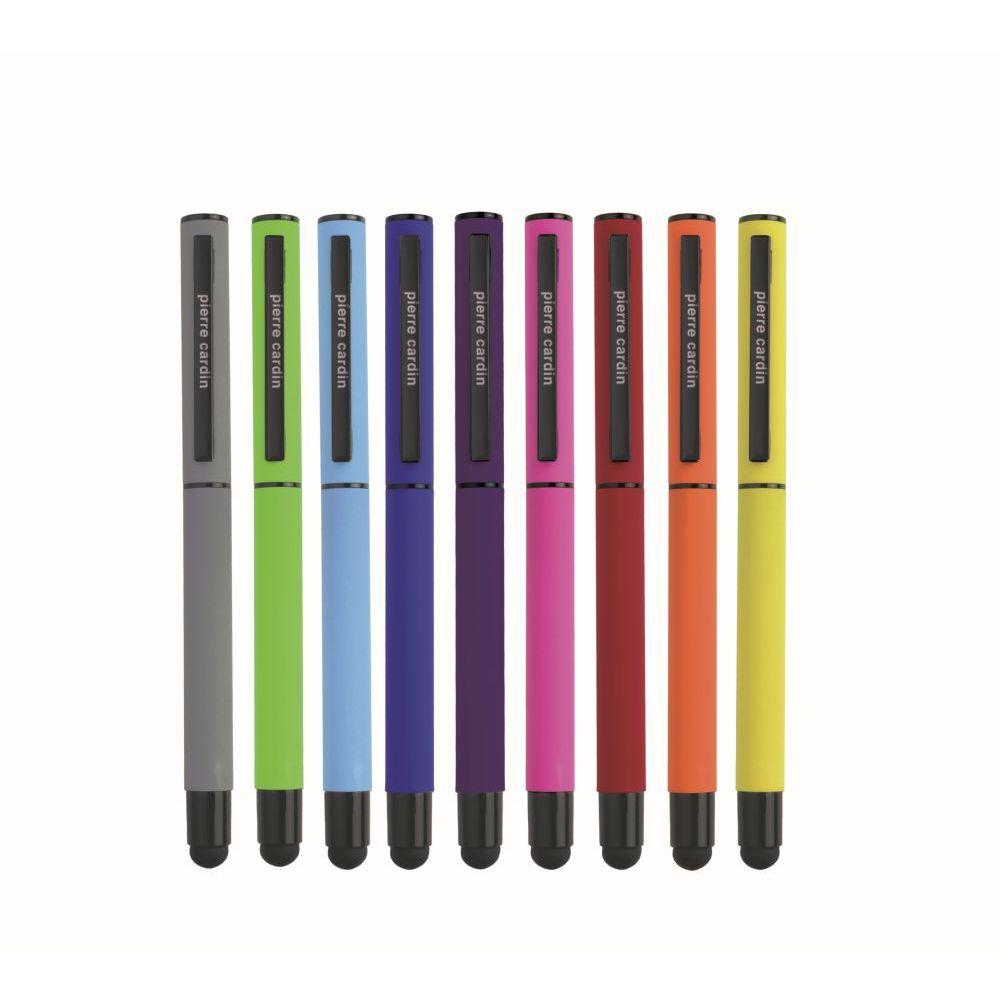 Luxusná súprava rollera a guľôčkového pera Pierre Cardin v módnej farbe s hliníkovým telom a gumovou povrchovou úpravou, ktorá je veľmi príjemná na dotyk. Perá majú čierne detaily a stylus. Roller obsahuje modrú náplň značky Schneider s hrotom 0,5 mm a guľôčkové pero kvalitnú modrú náplň s hrotom 0,7 mm. Balené v luxusnom puzdre Pierre Cardin, dodávané s certifkátom pravosti. Rozmery: roller 1 × 13,5 cm; guľôčkové pero 1 × 14 cm; balenie 7 × 15,5 cm.