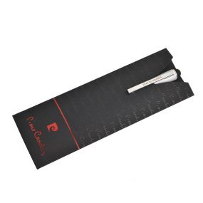 Luxusné guľôčkové pero Pierre Cardin s hliníkovým telom a gumovou povrchovou úpravou, ktorá je veľmi príjemná na dotyk. Pero má strieborné detaily, obsahuje stylus a kvalitnú modrú náplň s hrotom 1 mm. Balené v luxusnom puzdre Pierre Cardin, dodávané s certifkátom pravosti. Rozmery: guľôčkové pero 1 × 14 cm; balenie 5,5 × 15,5 cm.