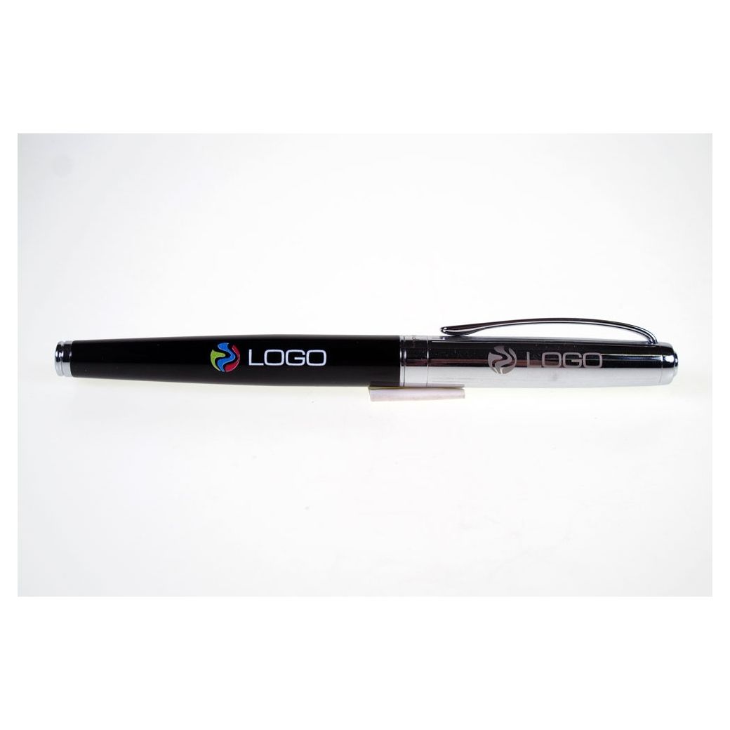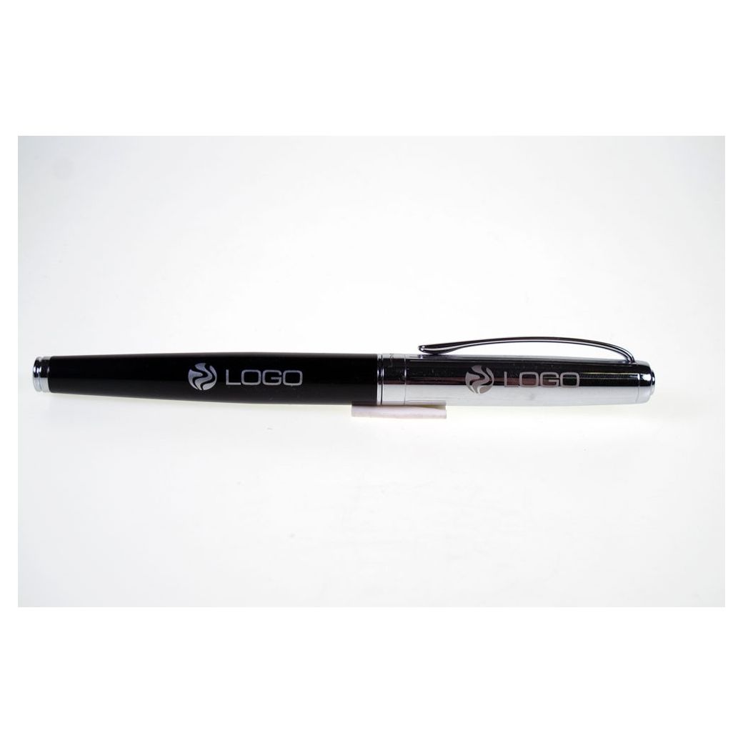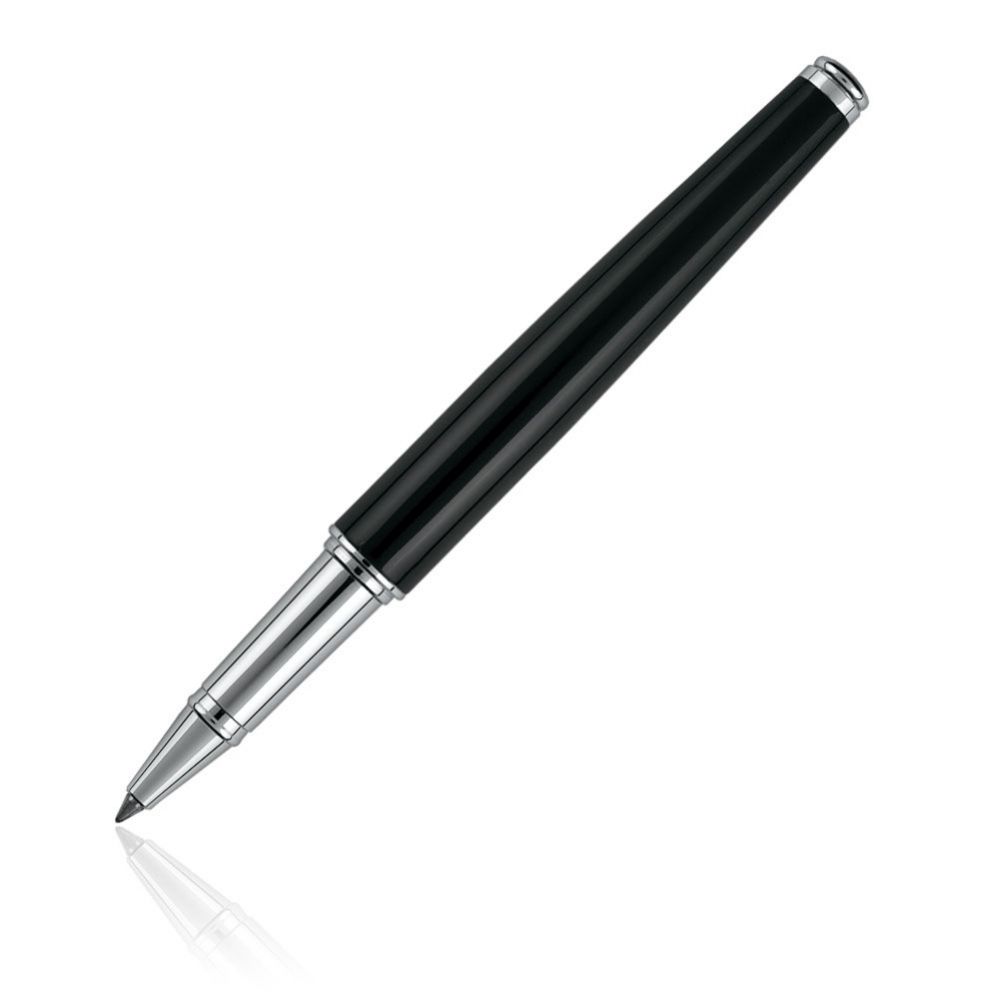 Značkový kovový roller Pierre Cardin. Spodná časť je v čiernom prevedení, vrchná strieborná časť je zdobená jemným rytím na povrchu. Hrot rolleru je chránený strieborným vrchnákom. Roller obsahuje značkovú nemeckú náplň Schmidt v modrej farbe s hrotom 0,6 mm, priložená je aj náhradná náplň v čiernej farbe. Balené v luxusnej krabičke Pierre Cardin, dodávané s certifkátom pravosti. Rozmery: roller 1,1 × 13,8 cm; balenie 18,5 × 3 ,1 × 7,5 cm.