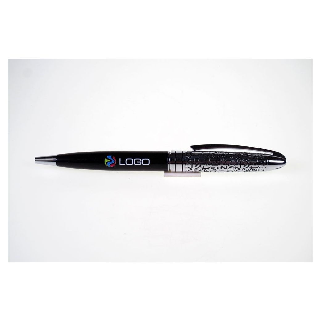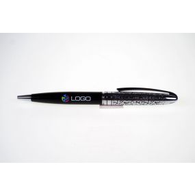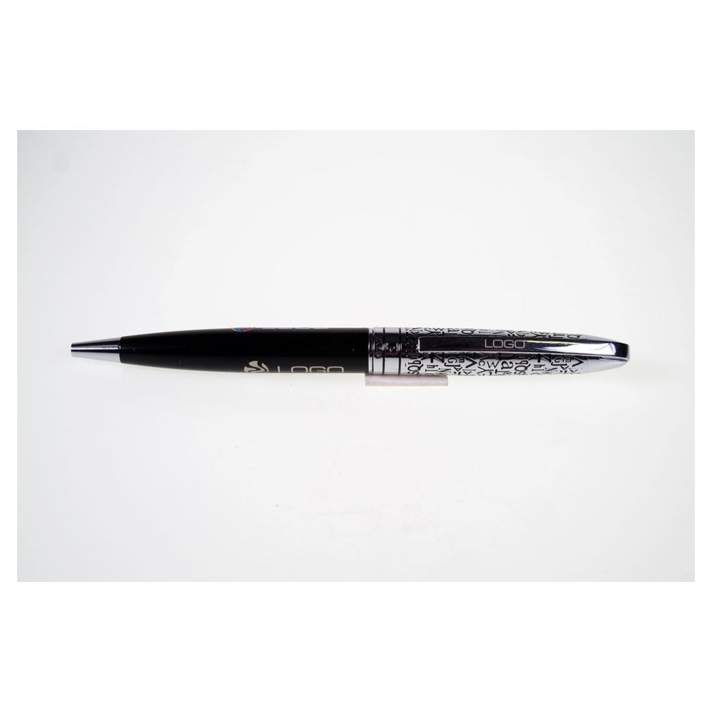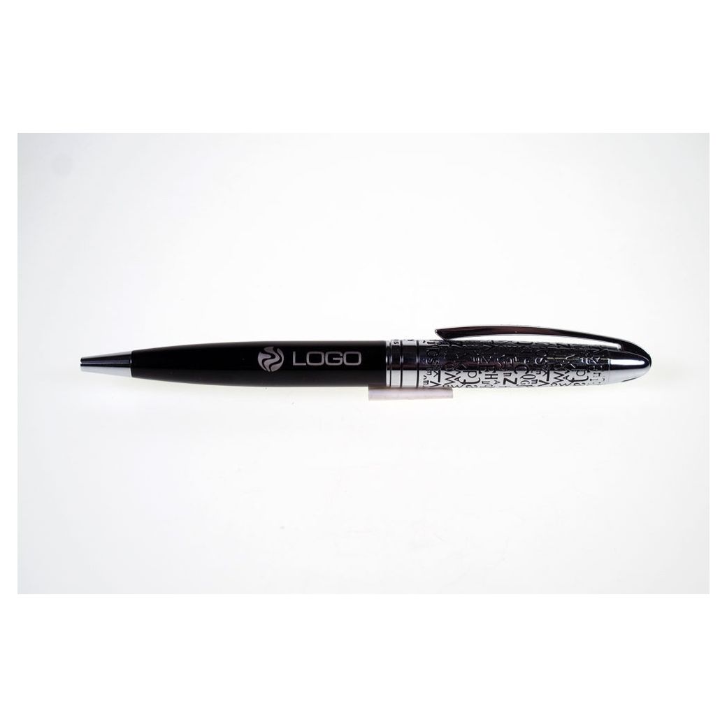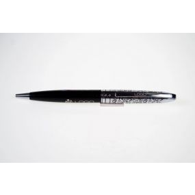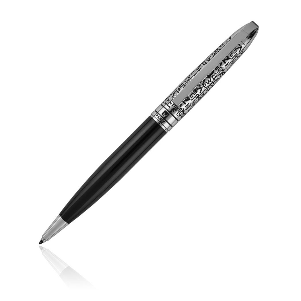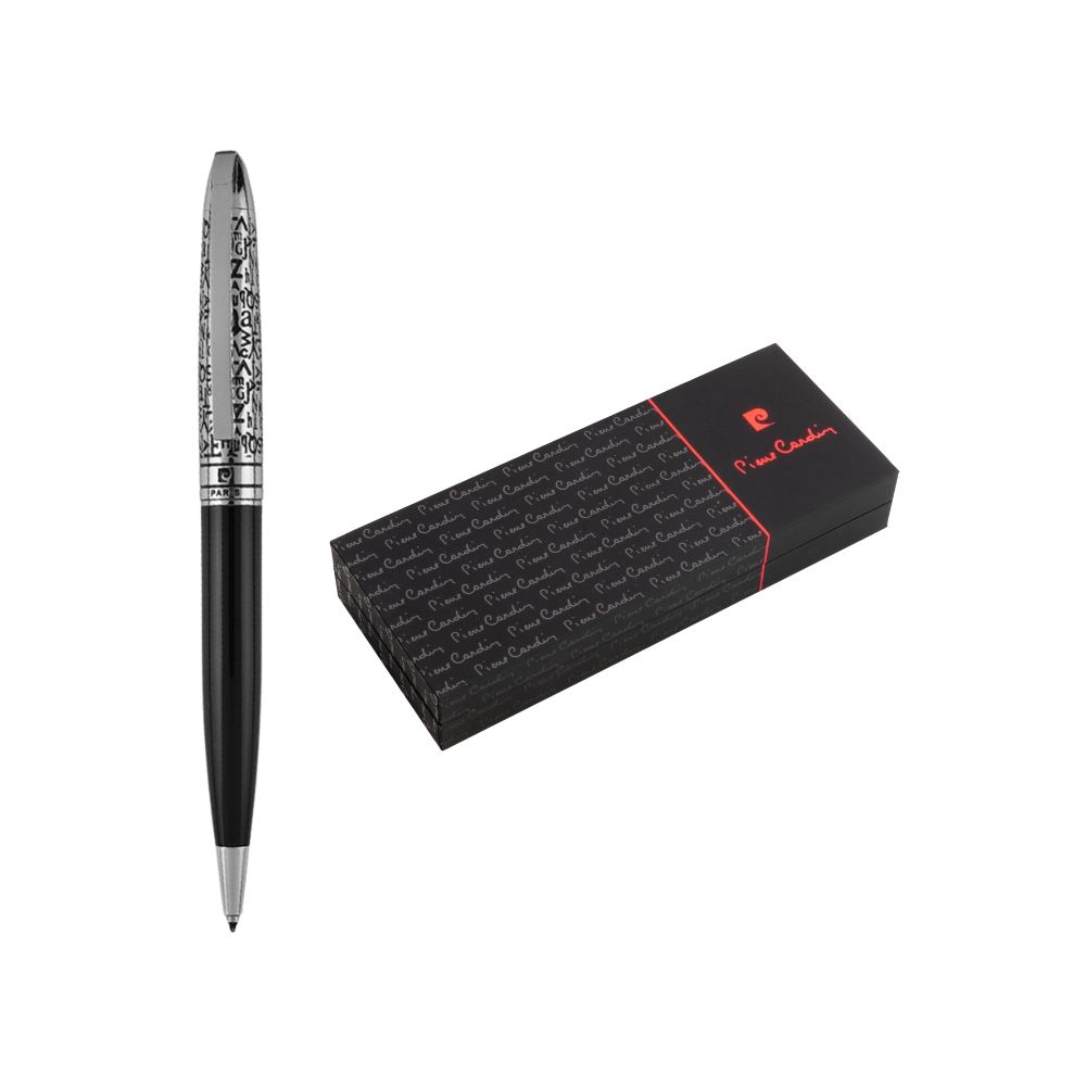 Značkové kovové guľôčkové pero Pierre Cardin. Výrazná kombinácia čierneho tela a strieborného vrchnáku s osobitým tmavým rytím latinky do povrchu. Guľôčkové pero obsahuje kvalitnú modrú náplň s hrotom 1 mm a náhradnú čiernu náplň. Balené v luxusnej krabičke Pierre Cardin, dodávané s certifkátom pravosti. Rozmery: guľôčkové pero 1 × 14 cm; balenie 18,5 × 3,1 × 7,5 cm.