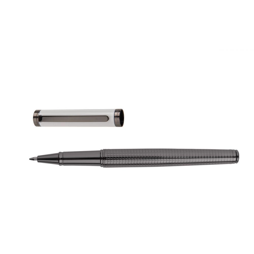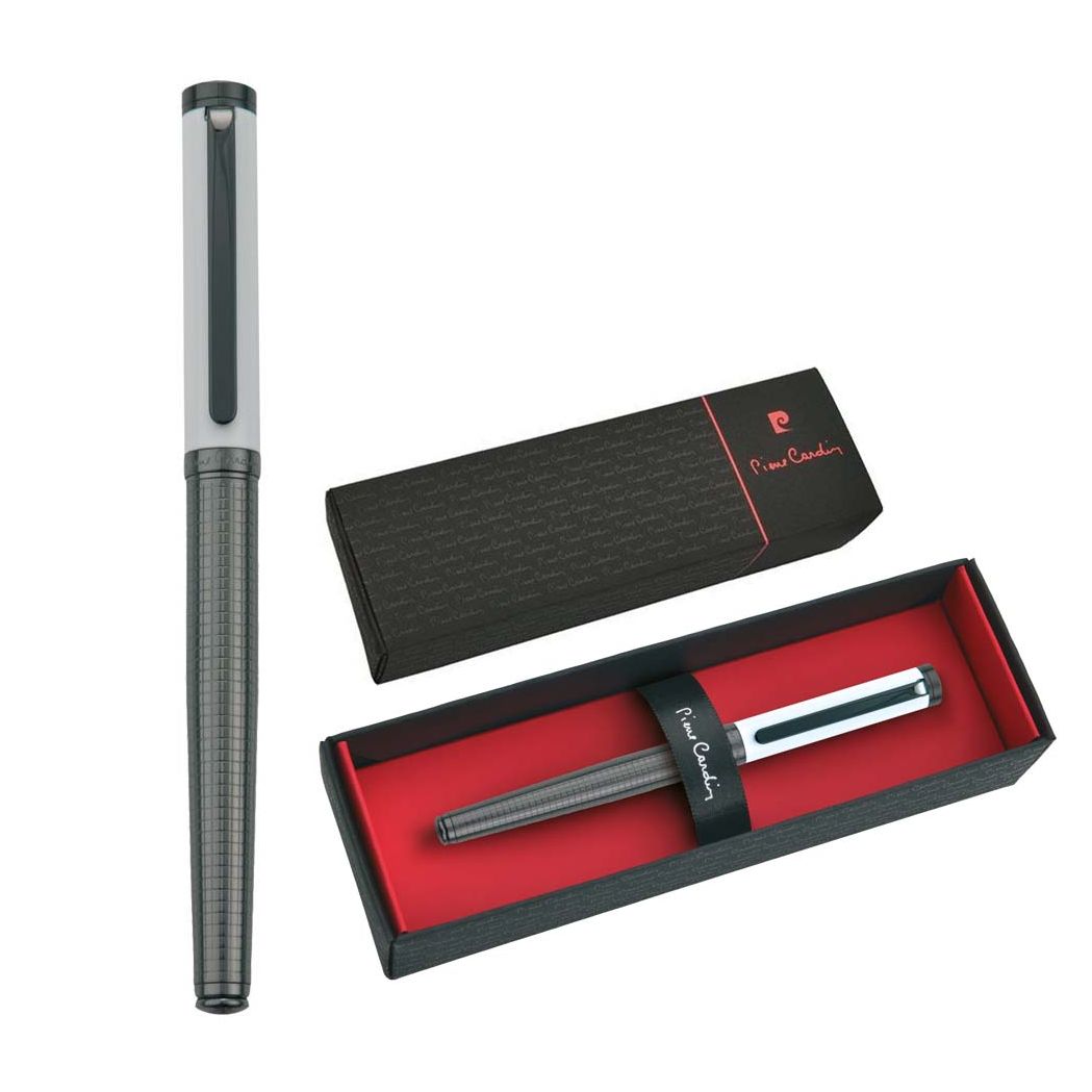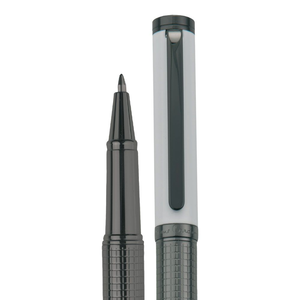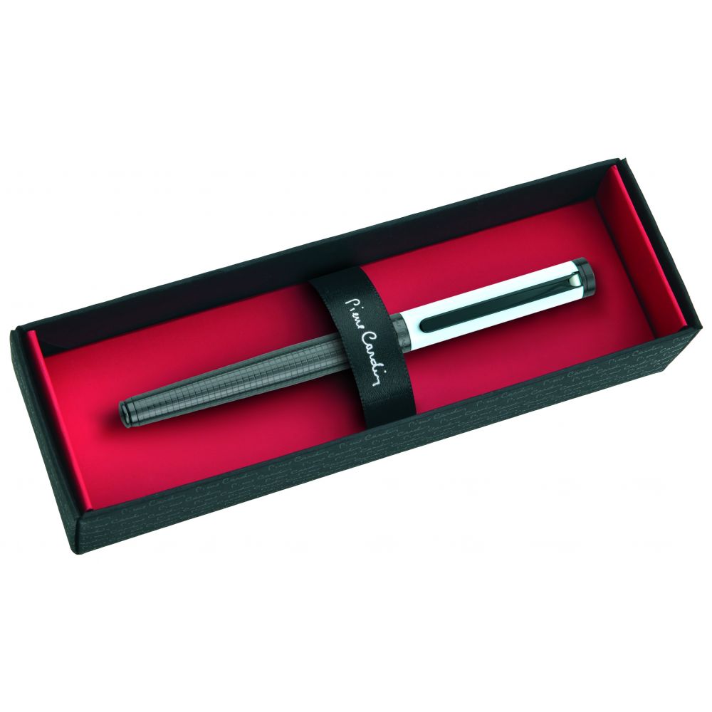 Značkový kovový roller je navrhnutý v bielom prevedení. Spodná časť jeho tela je zdobená luxusným rytím v gunmetalovej farbe. Hrot rolleru je chránený vrchnákom. Roller obsahuje značkovú nemeckú náplň Schmidt v modrej farbe s hrotom 0,6 mm a náhradnú čiernu náplň. Je balený v luxusnej krabičke Pierre Cardin s priloženým certifkátom pravosti. Rozmery: roller 1 × 13,7 cm; balenie 17,5 × 6,7 × 3,5 cm.